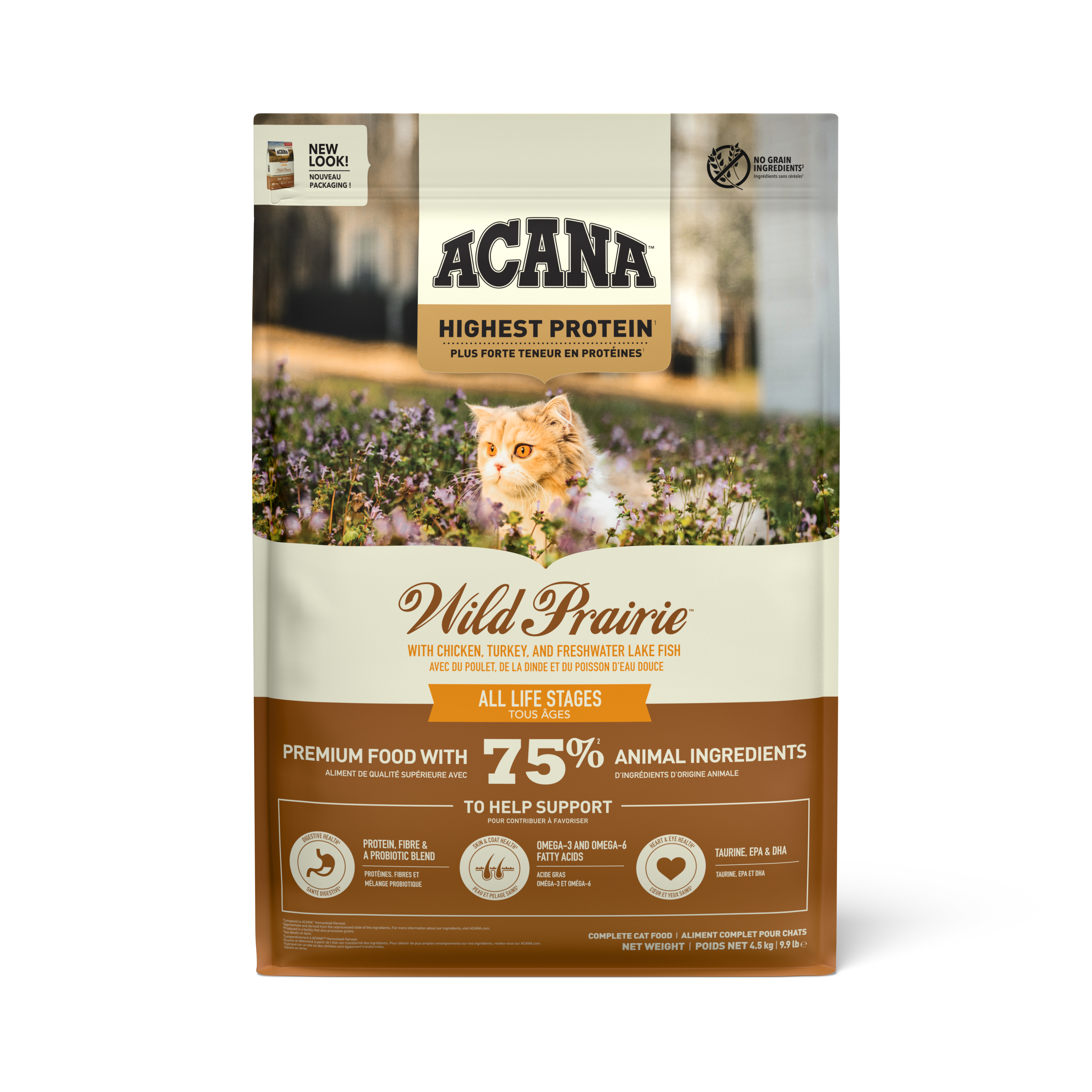 Pollo fresco (11%), pavo crudo (10%), menudillos de pollo frescos (hígado, corazón, molleja) (9%), pollo deshidratado (9%), pavo deshidratado (8%), arenque deshidratado (8%), judías pintas enteras, guisantes enteros, grasa de pollo (5%), lentejas rojas enteras, garbanzos enteros, lentejas verdes enteras, huevos frescos (4%), pescado de lago de agua dulce crudo* (4%) trucha cruda (4%), hígado de pavo crudo (2%), fibra de lenteja, aceite de pescado (1%), algas deshidratadas, calabaza fresca entera, calabaza butternut fresca entera, zanahorias frescas enteras, manzanas frescas enteras, peras frescas enteras, calabacín fresco entero, raíz de achicoria deshidratada, col rizada fresca, espinacas frescas, hojas de nabo frescas, hojas de remolacha frescas, arándanos rojos enteros, arándanos azules enteros, bayas de Saskatoon enteras, raíz de cúrcuma, cardo lechoso, raíz de bardana, lavanda, raíz de malvavisco, escaramujos. *mezcla variada de cisco crudo, pescado blanco, lucio del norte y mújol